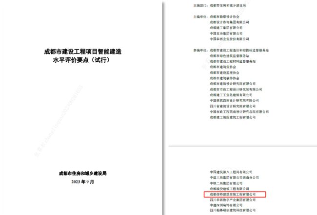 行業(yè)動(dòng)態(tài) | 倍特建安參編的《成都市建設工程項目智能建造水平評價(jià)要點(diǎn)(試行)》發(fā)布